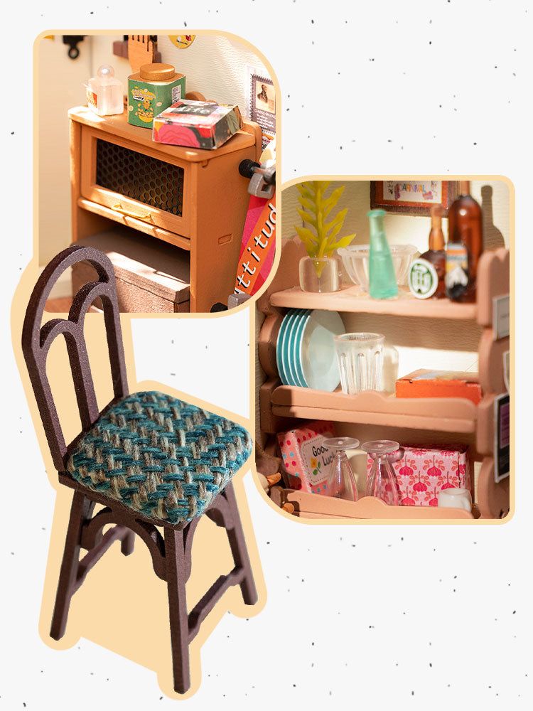 Es handelt sich um ein komplettes Bastelset, mit dem Sie ein detailreiches Miniaturzimmer oder eine Szene selbst gestalten können. Jedes Set enthält alle Materialien, Werkzeuge und eine leicht verständliche Schritt-für-Schritt-Anleitung. Dieses entspannende Projekt erweckt ein gemütliches Dekorationsobjekt zum Leben und beschert Ihnen ein wunderschönes, handgefertigtes Ergebnis, das Sie stolz zu Hause präsentieren können.