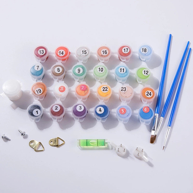 Unser DIY Malen-nach-Zahlen-Set enthält alles, was du brauchst, um ein schönes Bild mit deinen eigenen Händen zu gestalten. Jede Box umfasst eine hochwertige Leinwand, kräftige Farben, drei Qualitätspinsel, eine leicht verständliche Anleitung und optional passende Rahmen. Folge einfach den Zahlen und sieh zu, wie dein Kunstwerk Schritt für Schritt zum Leben erwacht.